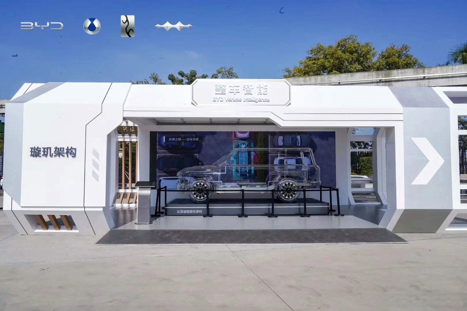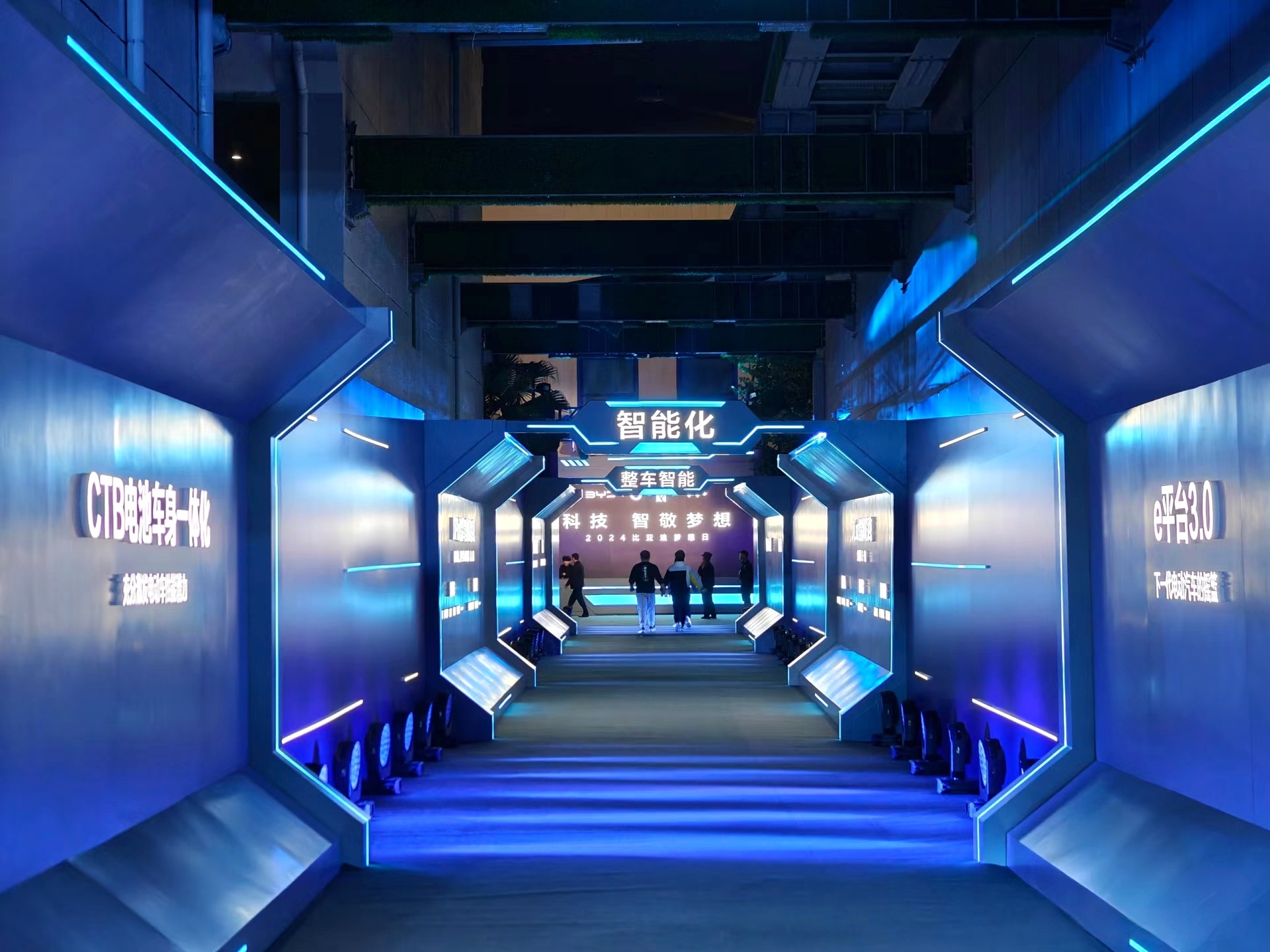 該區域將采用簡潔而富有科技感的設計,以圖文并茂的方式展示比亞迪在智能化技術方面的創新成果。展板上的文字和圖片將采用高清打印技術,確保信息的清晰度和準確性。同時,展區內的燈光設計也將以冷色調為主,營造出科技、專業的氛圍。