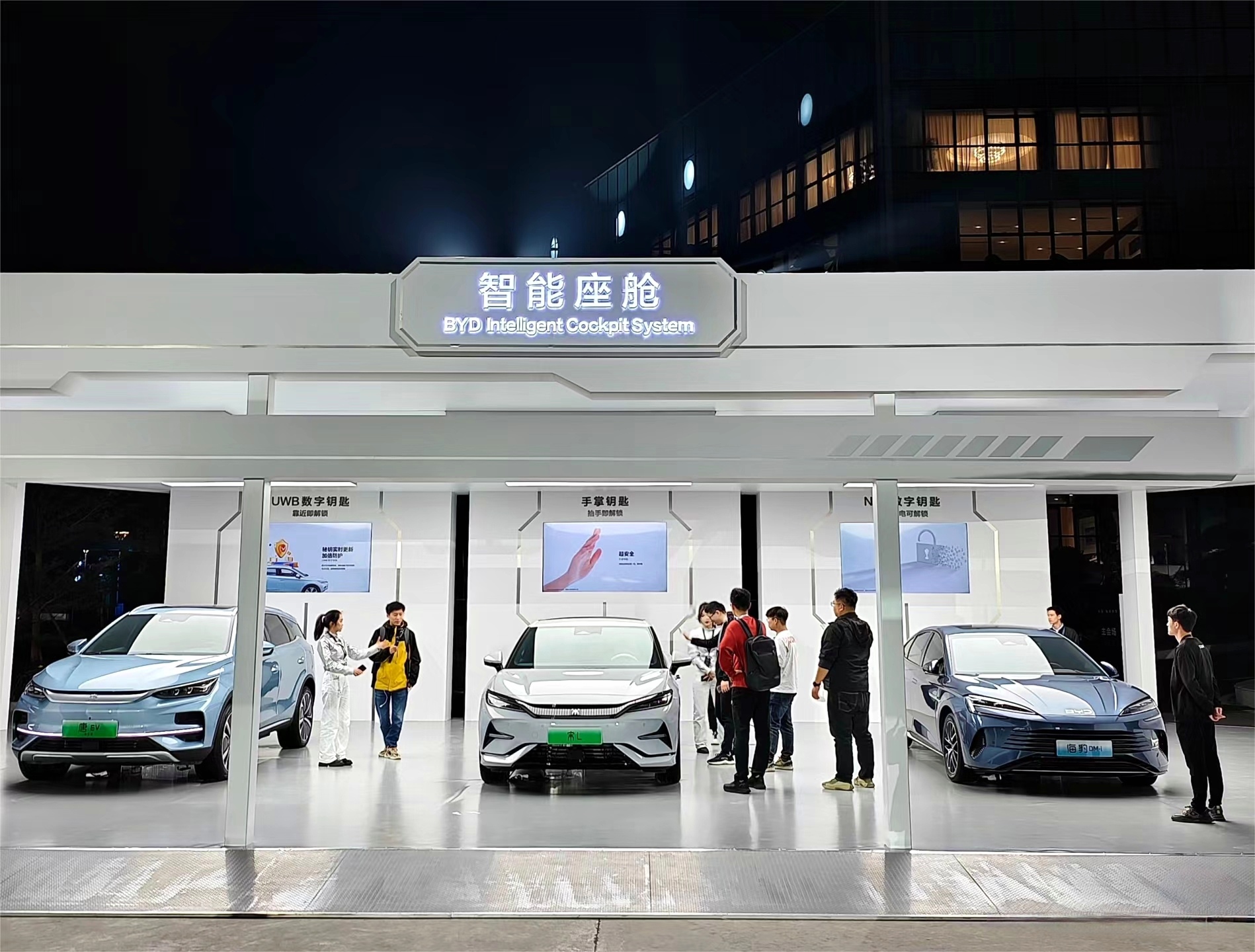 互動體驗區將采用多種互動設備和技術,如觸摸屏、AR眼鏡等,讓參觀者可以通過互動的方式更加深入地了解比亞迪新能源汽車的智能化特點。同時,該區域的燈光設計也將以柔和、溫馨為主,為參觀者提供舒適的體驗環境。