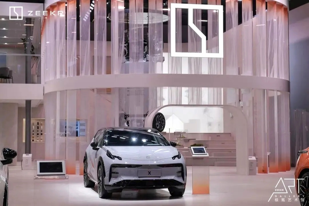 科技與藝術的完美融合:極氪展臺將科技與藝術元素巧妙結合,創造出一個既充滿科技感又不失藝術氛圍的展示空間。這種設計不僅展示了極氪品牌的前沿科技實力,還通過藝術手段增強了品牌與用戶的互動和共鳴。