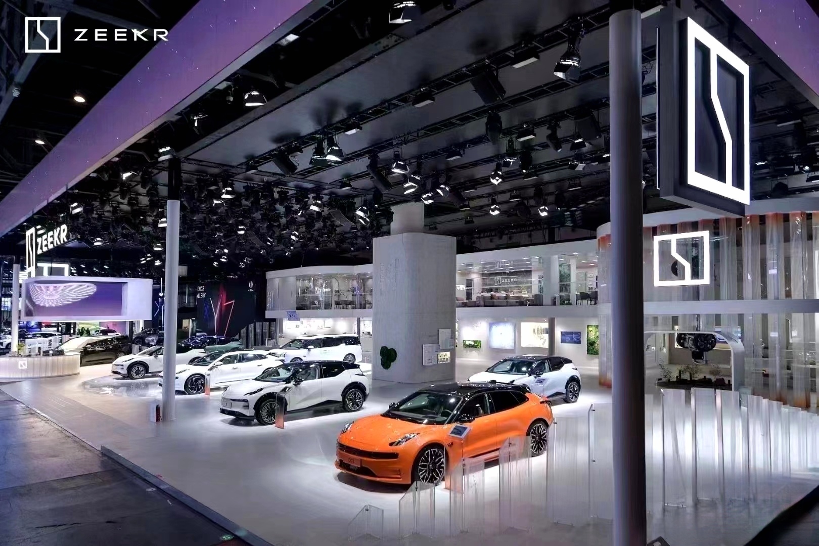 全系車型亮相:極氪展臺展示了極氪品牌的全系在售車型,包括豪華獵裝轎跑極氪001、全球首款原生純電豪華MPV極氪009以及新奢全能SUV極氪X。這些車型在展臺上爭奇斗艷,充分展現了極氪品牌的產品矩陣和全球純電智能豪華汽車領導品牌的定位。