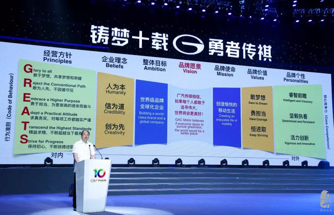 當晚,廣汽傳祺發布了全新的企業品牌口號、品牌精神和企業文化,向未來的愿景和基業長青邁出重要“一步”。這也是歷經10年高質量發展,進入新一輪發展通道的廣汽傳祺對于未來的思考與踐行。