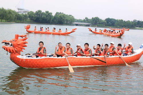 在為期3天的實(shí)踐活動(dòng)中,學(xué)員們?cè)谏虾?ldquo;東方綠舟”訓(xùn)練營(yíng)教官的指揮帶領(lǐng)下,參加了各種拓展活動(dòng),其中步調(diào)一致、劃龍舟等項(xiàng)目更是體現(xiàn)了團(tuán)隊(duì)合作精神,增強(qiáng)了團(tuán)隊(duì)意識(shí),培養(yǎng)了團(tuán)隊(duì)協(xié)作能力。登上按1:1的比例精心仿造的航空母艦,參觀了國(guó)家安全教育館、武器展覽大廳,看到了各種各樣的高新技術(shù)武器模型,學(xué)員們無(wú)不驚嘆高科技裝備的精良和先進(jìn)。在“智慧大道”上,幾十位古今中外的科學(xué)家、學(xué)者、發(fā)明家的成長(zhǎng)歷程都激發(fā)著每個(gè)孩子熱愛科學(xué),熱愛學(xué)習(xí),勇攀科學(xué)高峰的志向。“生活實(shí)踐區(qū)”是學(xué)員們住宿的地方,大家雖沒去過國(guó)外,卻在這里看到了仿造的西班牙、荷蘭、希臘、英國(guó)公寓、美國(guó)木屋等等,這里真是一個(gè)奇妙無(wú)比的小小“地球村”。