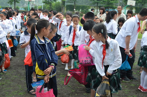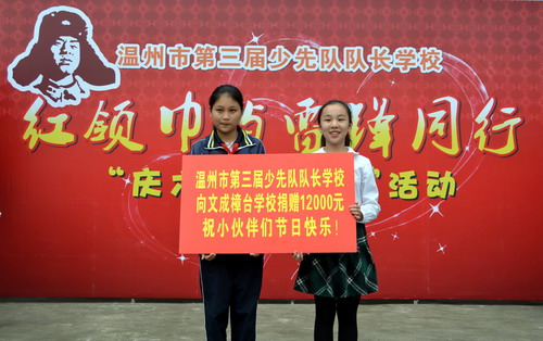 5月27日,溫州市第三屆少先隊隊長學(xué)校130名學(xué)員到文成縣樟臺圣雄希望小學(xué)開展“紅領(lǐng)巾與雷鋒同行”系列活動之“慶六一•送溫暖”手拉手結(jié)對活動。