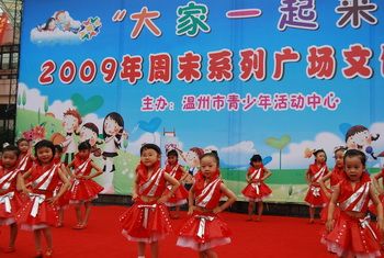 5月17日,活動策劃,“大家一起來”2009年周末系列廣場活動之舞蹈專場在市青少年活動中心廣場精彩上演,通過溫州市都市報預(yù)報名,共有16個節(jié)目參加了演出。本次活動旨在為全市的舞蹈愛好者提供展現(xiàn)自我風(fēng)采的舞臺和機(jī)會。演員們生動活潑、形式多樣的拉丁舞、街舞、爵士舞、印度舞等節(jié)目表演充分展示自信、充滿活力的風(fēng)采。