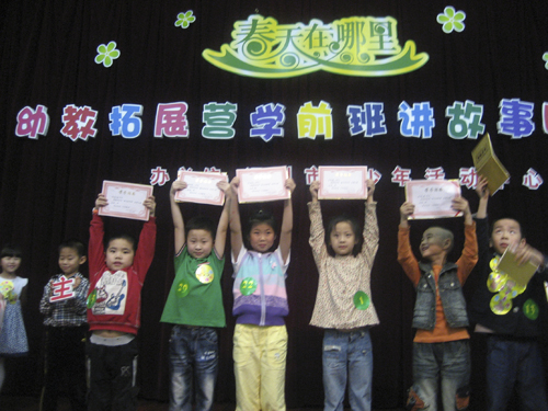 在比賽中,小選手們的表現(xiàn)落落大方、天真可愛……贏得了觀眾一陣陣熱烈的掌聲。小選手的爸爸媽媽對此次比賽也都十分重視,不但為孩子精心選擇故事,在家中還進行了多次彩排;比賽當天把孩子打扮得漂漂亮亮的,還帶著相機、DV來拍攝精彩的場面。