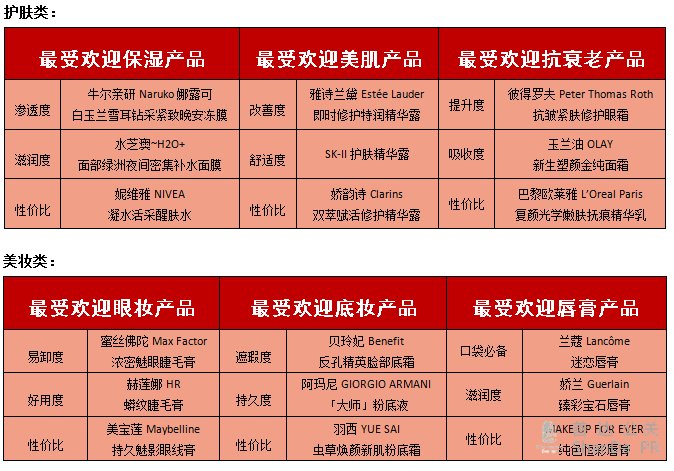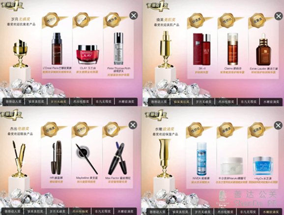 此次評選活動的候選產品被分成兩大類別:護膚類和美妝類,針對不同產品的特質設置了不同的評選類別,并從消費者最看中的“產品功效”角度設置投票,投票結果可以讓消費者直觀的了解到每個產品最出色的部分。評選結果如下: