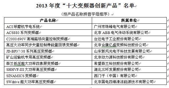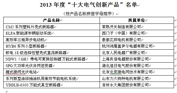 由中國電工技術學會主辦的“2013第八屆中國電工裝備創新與發展論壇”于2013年6月22~23日在北京舉行,其主題為“電機系統節能技術與能效管理,智能微電網系統與技術”,來自全國產業界和科技界的代表180多人參加了本次盛會。作為此次盛會的主題板塊之一的——2013年度“十大電氣創新企業及十大電氣創新產品”發布活動,,向行業公布了包括“十大電氣創新企業”、“十大電氣創新產品”和“十大變頻器創新產品”的研究碩果。