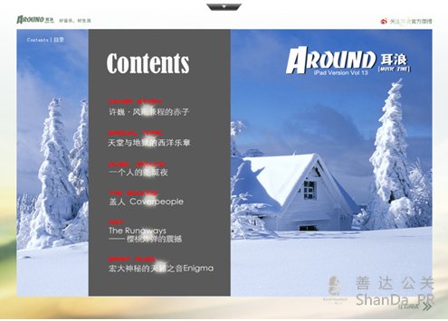 近日,由北京天智通達信息技術(shù)有限公司(簡稱“天智通達”)為《耳浪》(Around)音樂雜志量身打造的耳浪音樂志的iPad與iPhone版客戶端炫靚上線,使得鐘情于《耳浪》的用戶可以隨時隨地享受音樂。