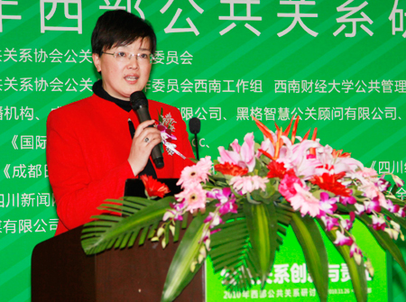 2010年11月26日,“2010年西部公共關(guān)系研討會”在成都舉行。本次大會主題為“公共關(guān)系的創(chuàng)新與責任”,由中國國際公共關(guān)系協(xié)會公關(guān)公司工作委員會主辦,中國國際公共關(guān)系協(xié)會公關(guān)公司工作委員會西南工作組、西南財經(jīng)大學公共管理學院承辦。西南財經(jīng)大學公共管理學院總支書書記章群到會并發(fā)表題為“西部公關(guān)的人才戰(zhàn)略”的演講,以下為演講全文: