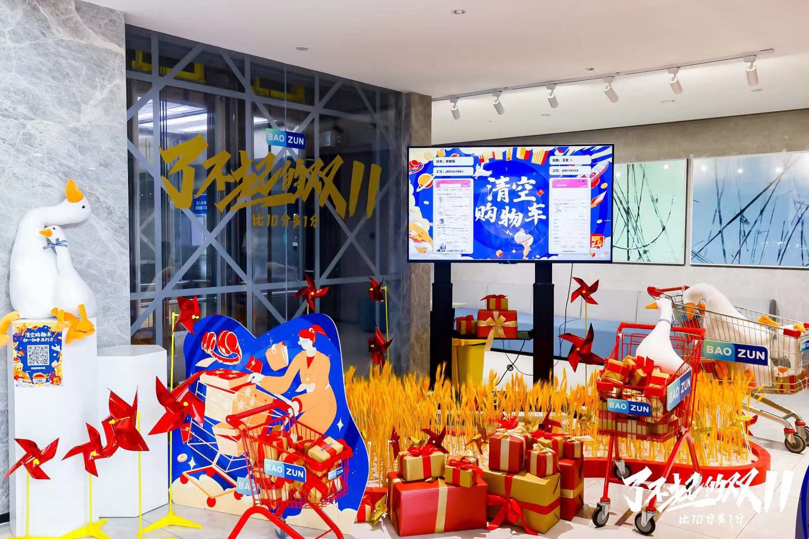 寶尊“了不起”市集活動概念主題火熱開放。辦公大樓布置、倒計時裝置、拍照墻、樂隊表演區以及“寶寶”和“尊尊”的加入把雙十一的節日氛圍感瞬間拉滿!