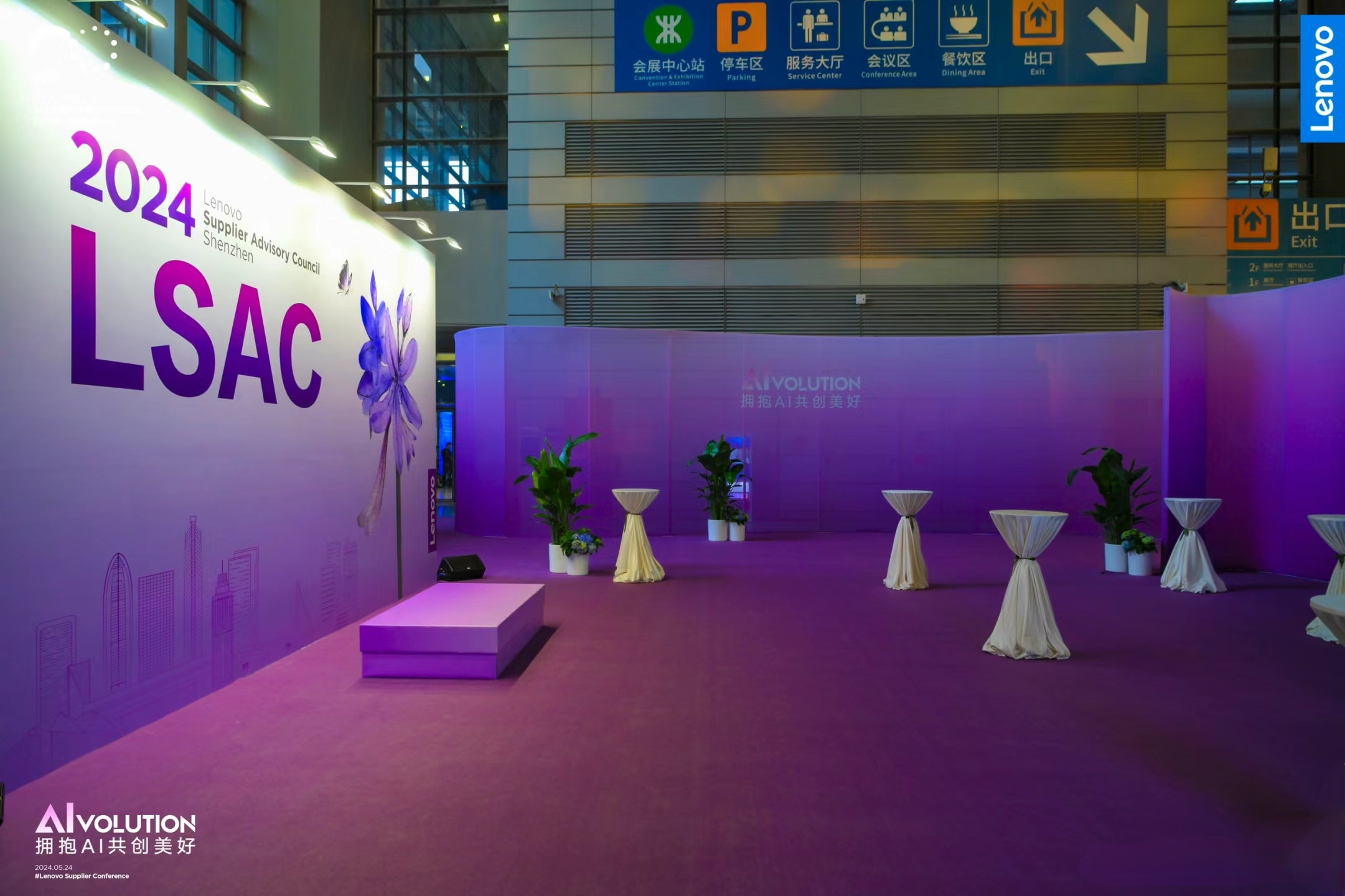 2024年聯想集團全球供應商大會的活動現場設計亮點在于其獨特的主題色調、豐富的AI元素、高質感的材質與造型、科技感十足的展示區以及深入的品牌歷程展示,同時前沿技術與產品的亮相也彰顯了聯想集團在科技創新和數字化轉型方面的實力與決心。