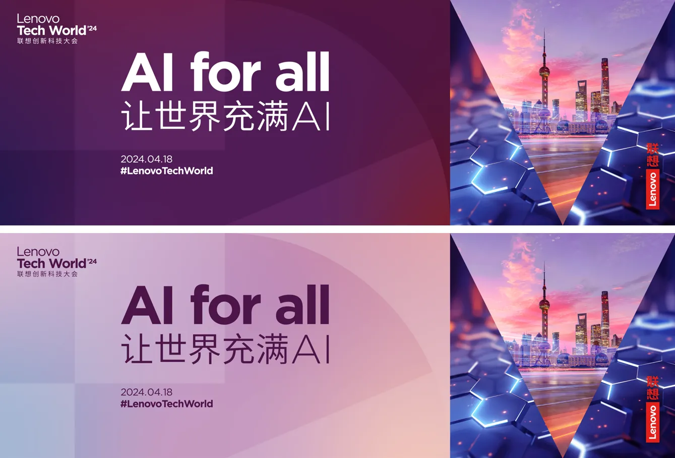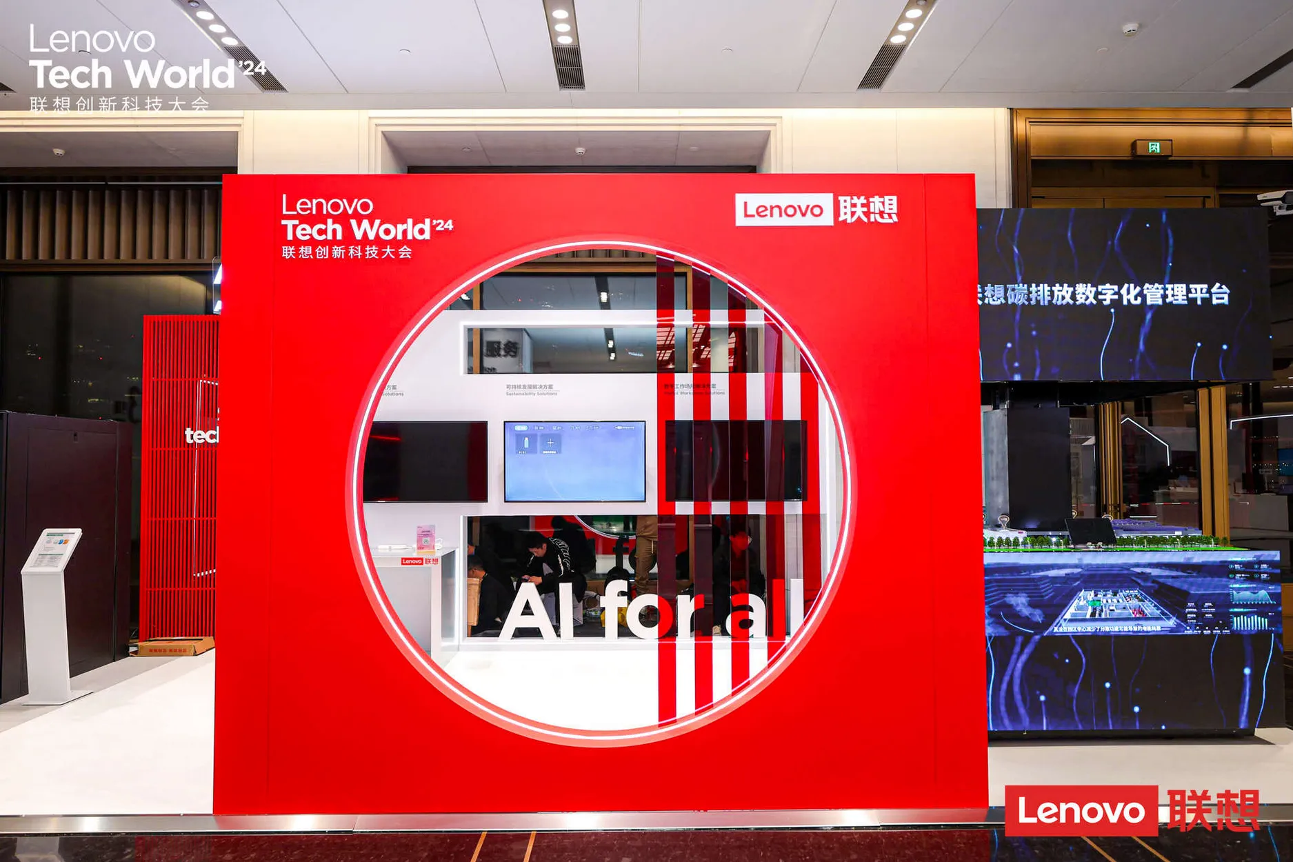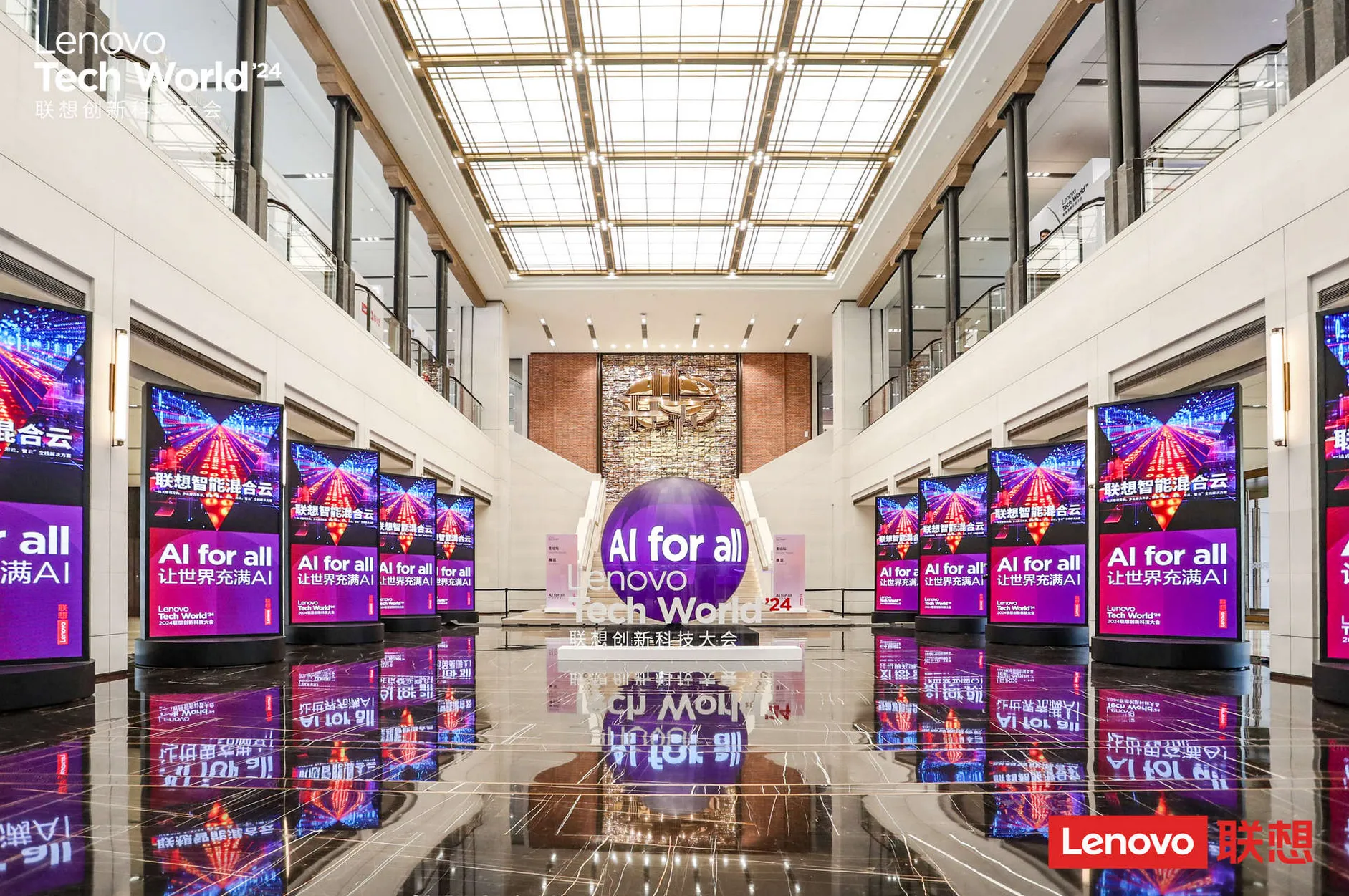主題明確:大會以“AI for All, 讓世界充滿AI”為主題,這一主題貫穿整個活動的視覺設計,通過各種視覺元素和展示形式,向參觀者傳遞了聯想在人工智能領域的戰略布局和前瞻視野。