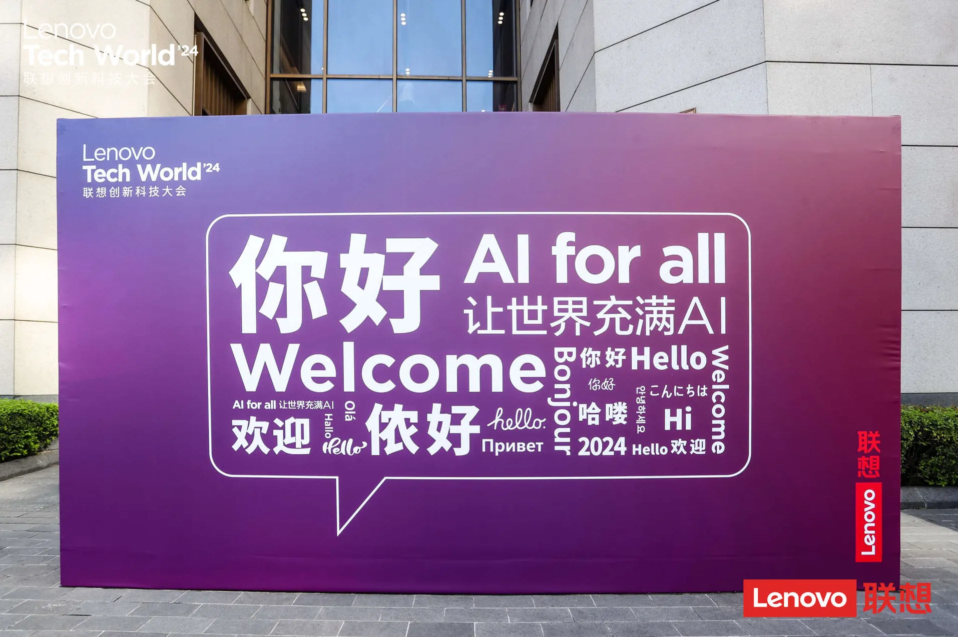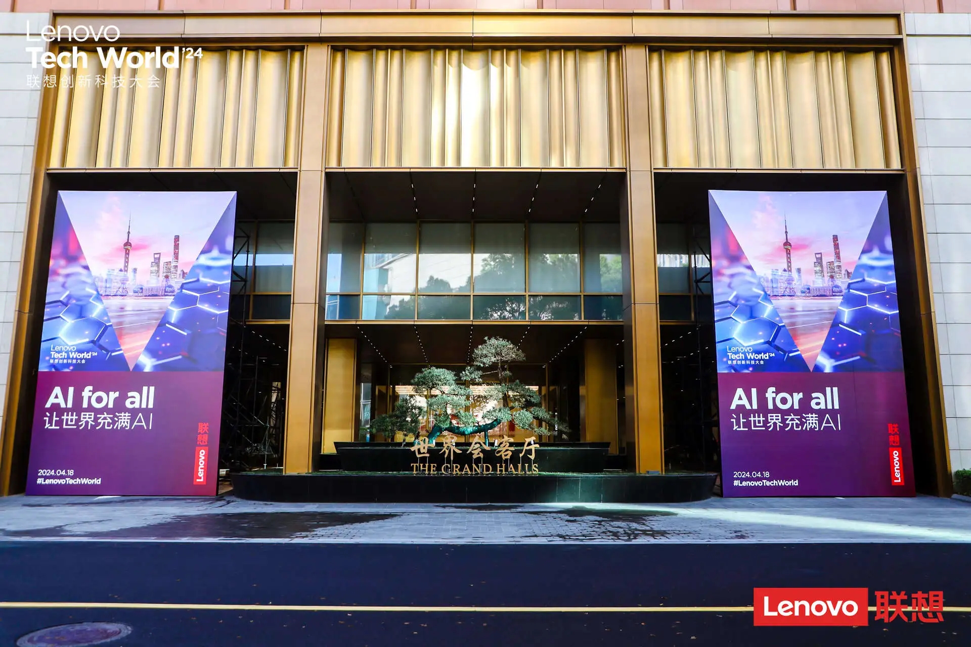 本次大會選址上海北外灘的“世界會客廳”,這一選擇不僅凸顯了聯想的全球視野與格局,更巧妙地將中式美學設計與現代科技完美融合,彰顯了聯想在全球科技舞臺上的風范和雄心。世界會客廳的建筑設計融合了中西方元素,既保留了傳統中式建筑的典雅風韻,又融入了現代設計的簡潔大氣,與聯想倡導的科技創新理念不謀而合,場地內的“迎客松”形象更是與大會的主題“AI for All,讓世界充滿AI”完美契合,象征著聯想敞開懷抱,迎接來自全球的嘉賓,展示其在AI領域的最新成果和未來愿景。