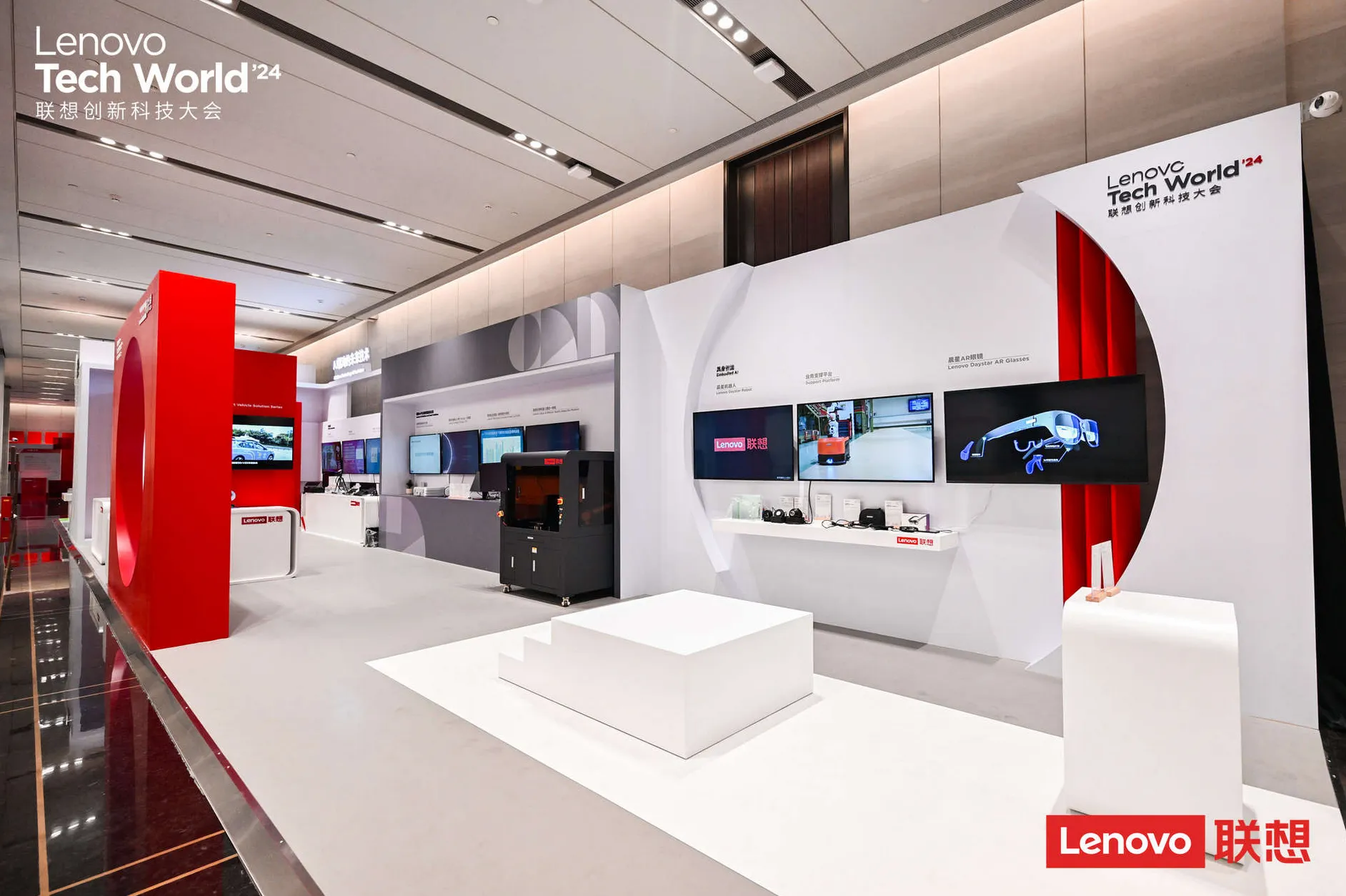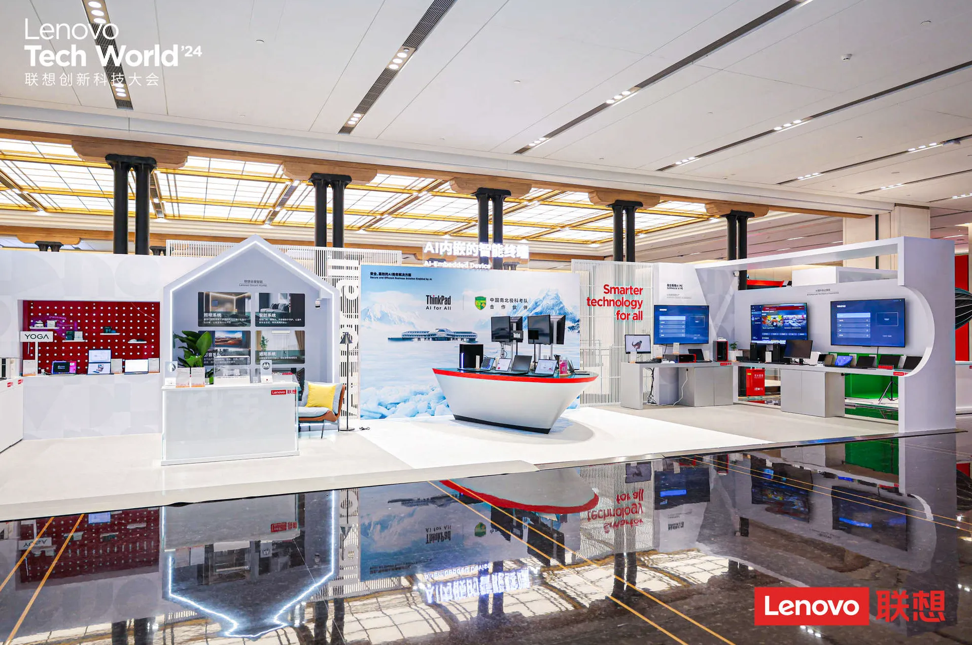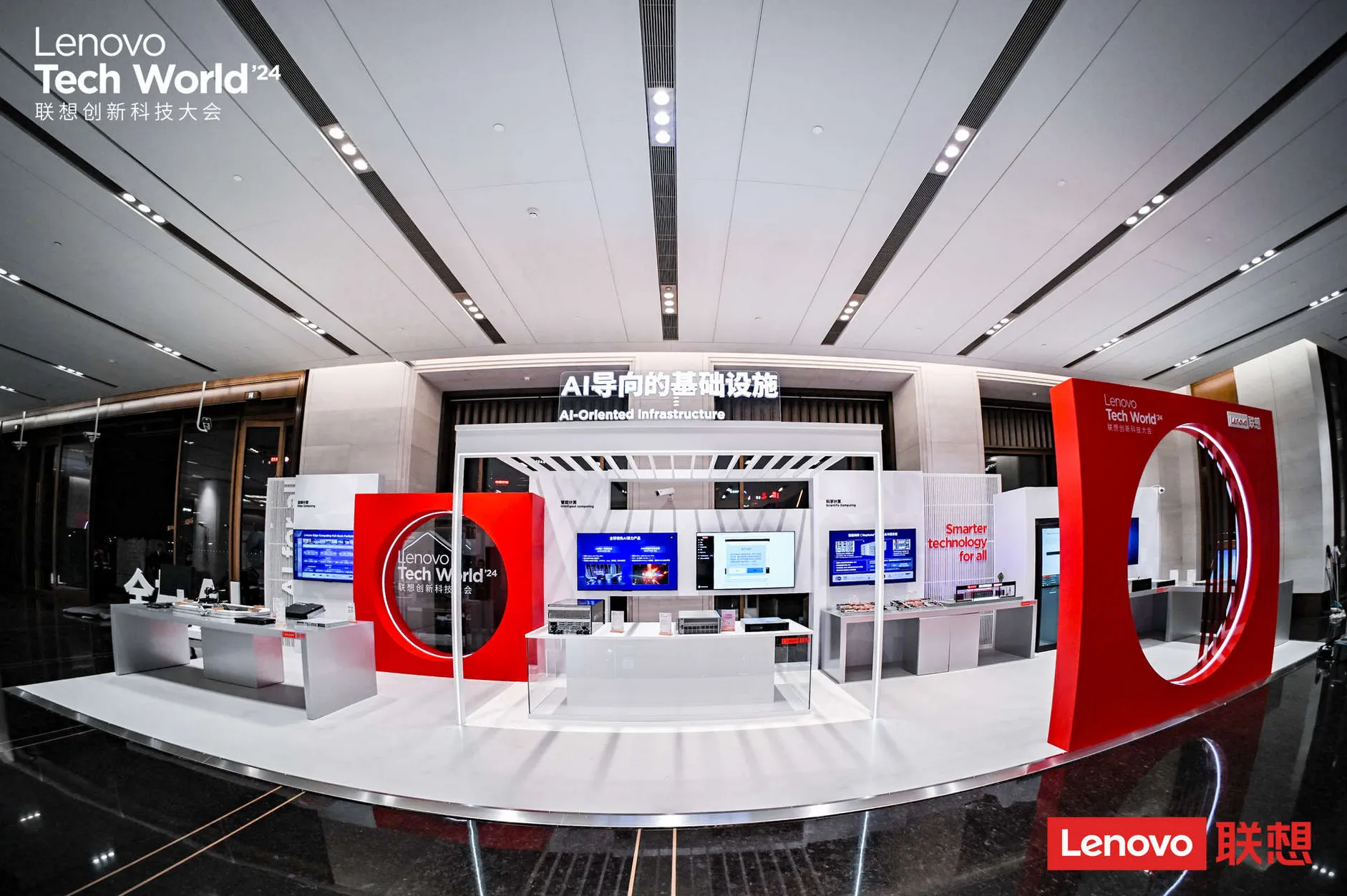 作為五年來首度回歸的線下盛會,聯想Tech World旨在讓與會者真正感知到聯想的AI科技,展區設計通過細膩的陳列布局、結構借景和建筑語言,不僅兼顧智慧科技體驗與場地風格,更深刻體現了聯想作為大國企業的世界格局。