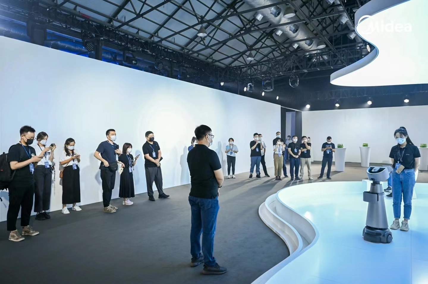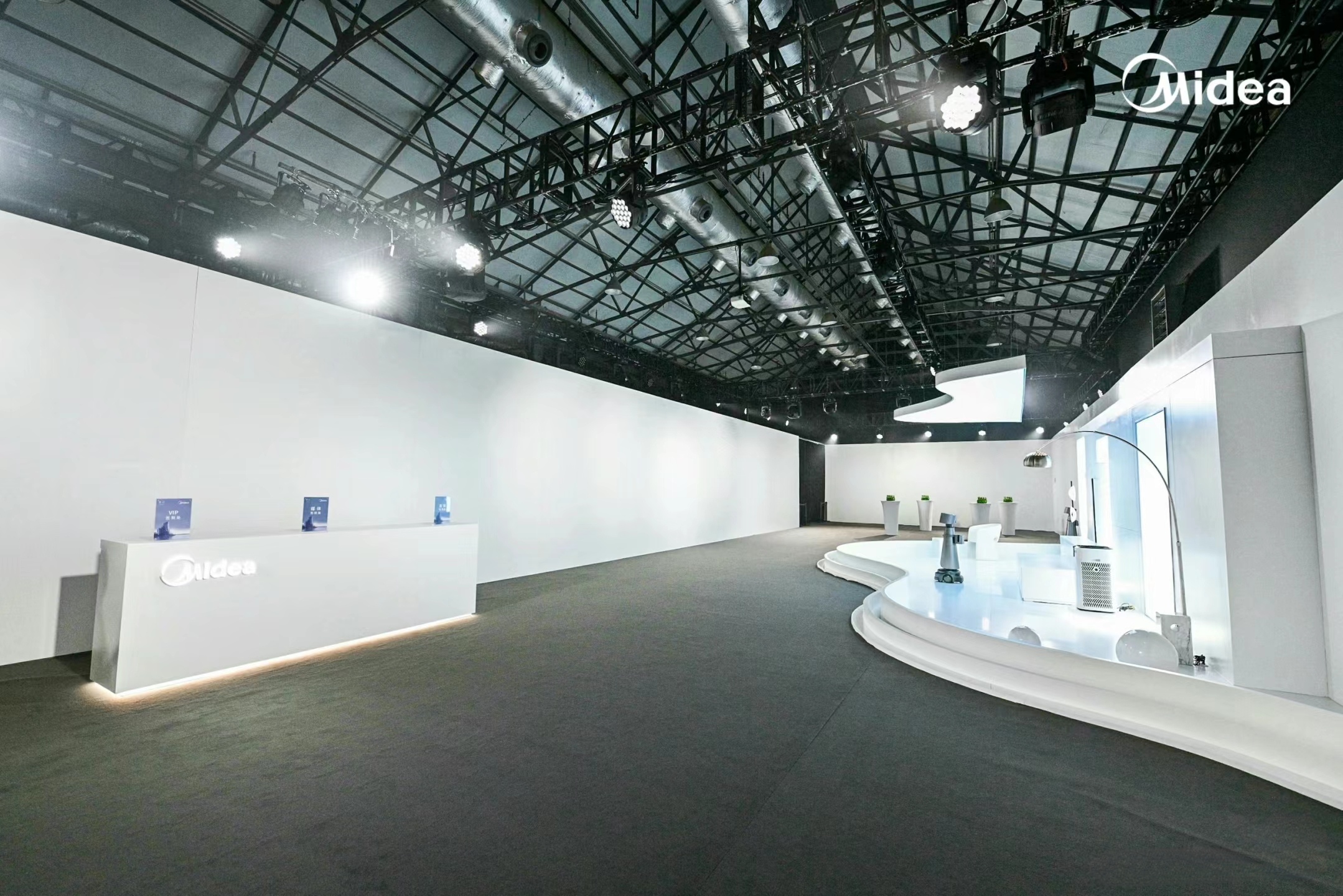 智能家居展示:通過現(xiàn)場智能家居的展示,如美的W12掃地機器人等,體現(xiàn)美的集團在AIoT技術方面的應用和創(chuàng)新。