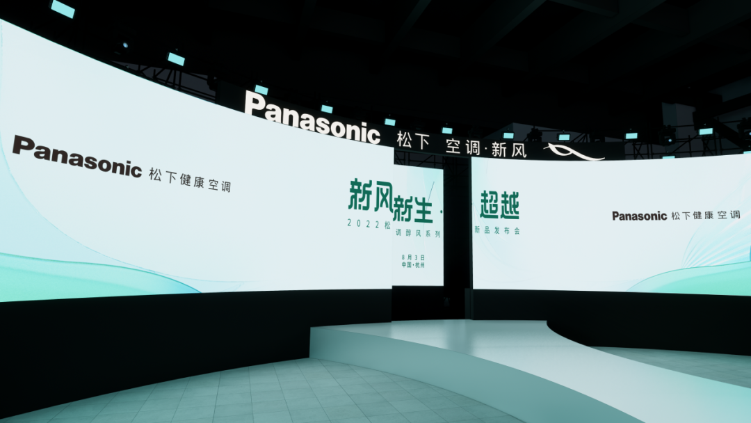 從新品的設(shè)計美學(xué)出發(fā),從風(fēng)可感知的藝術(shù)形態(tài),以曲線作為本次發(fā)布會的主視覺呈現(xiàn)元素。整體構(gòu)圖以鯨魚尾翼躍出海面擊打起的浪花為靈感,層層遞進的浪花,是浪也似風(fēng)的形態(tài),寓意新風(fēng)即將帶來的行業(yè)新浪潮,也彰顯松下品牌在行業(yè)內(nèi)新勢所趨。