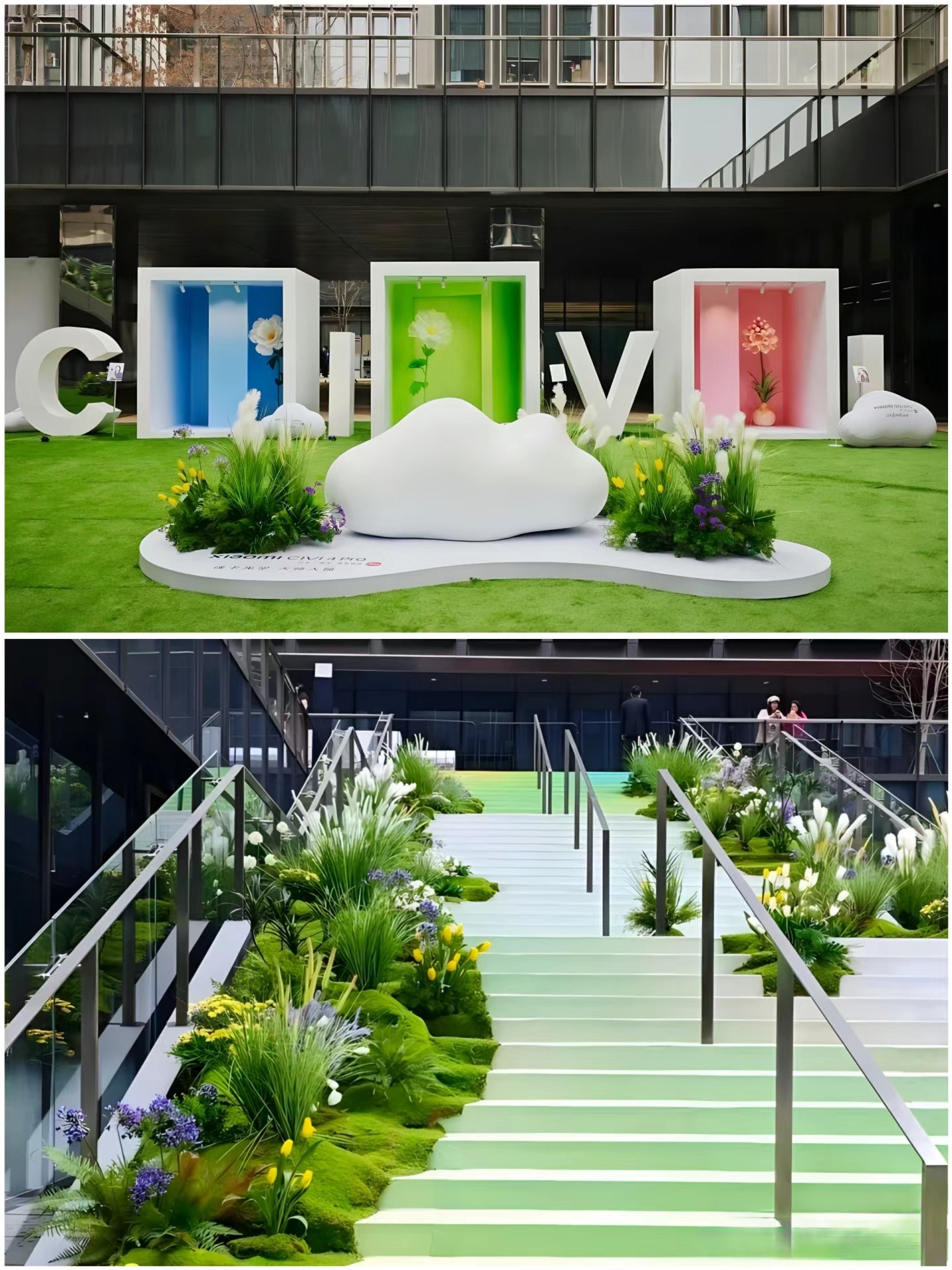 在現代設計與大自然的交匯點上,給大家呈現了一場視覺與技術的盛宴。氣球,還有繽紛的花卉與綠植,讓每一個角落都散發出自自然美學空間﹣精心打造的戶外展區不僅有飄浮的云然的魅力。步入這片綠洲,仿佛置夢幻花園,每一步都充滿驚喜。