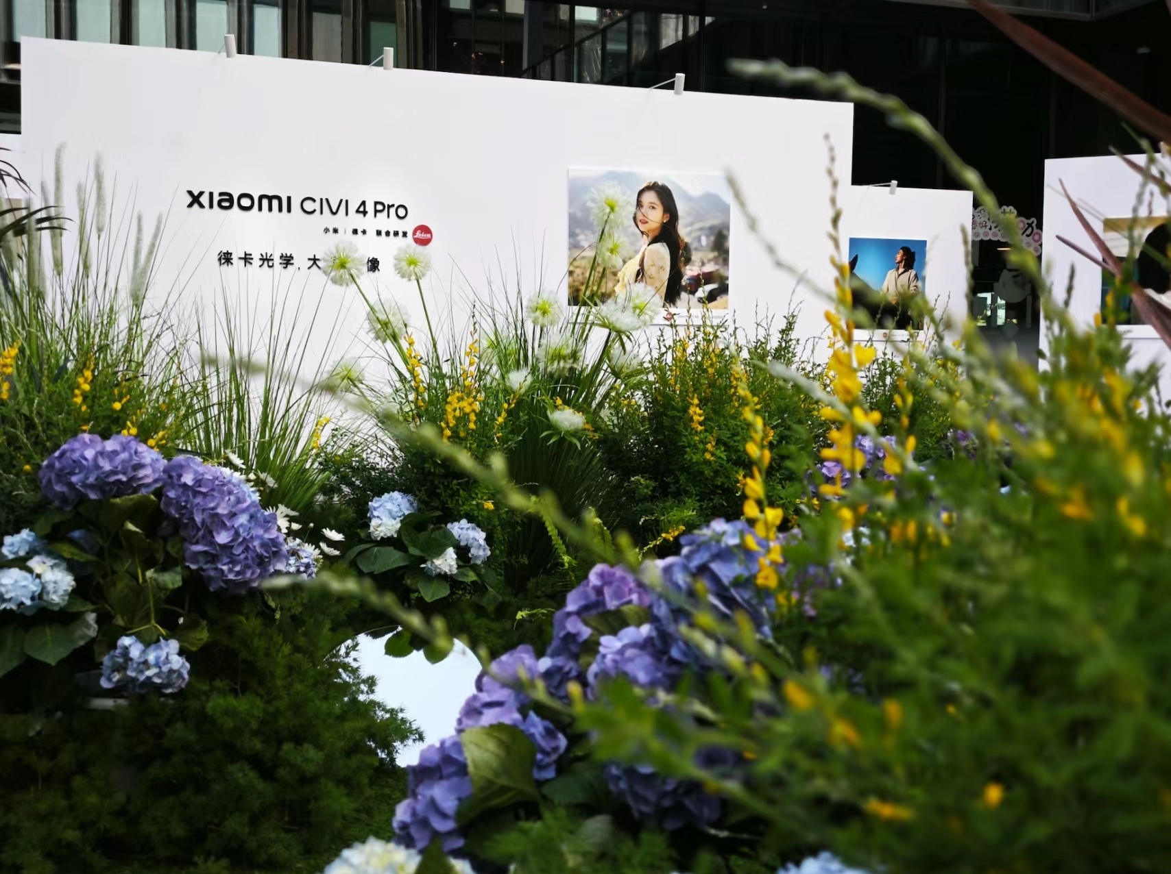 現場設置了多個精美的拍照場景,包括潮流掌鏡人此沙、張婧儀和周雨彤的人像照展示區,以及多張使用小米Civi 4 Pro人像模式拍攝的照片作為拍照背景板。