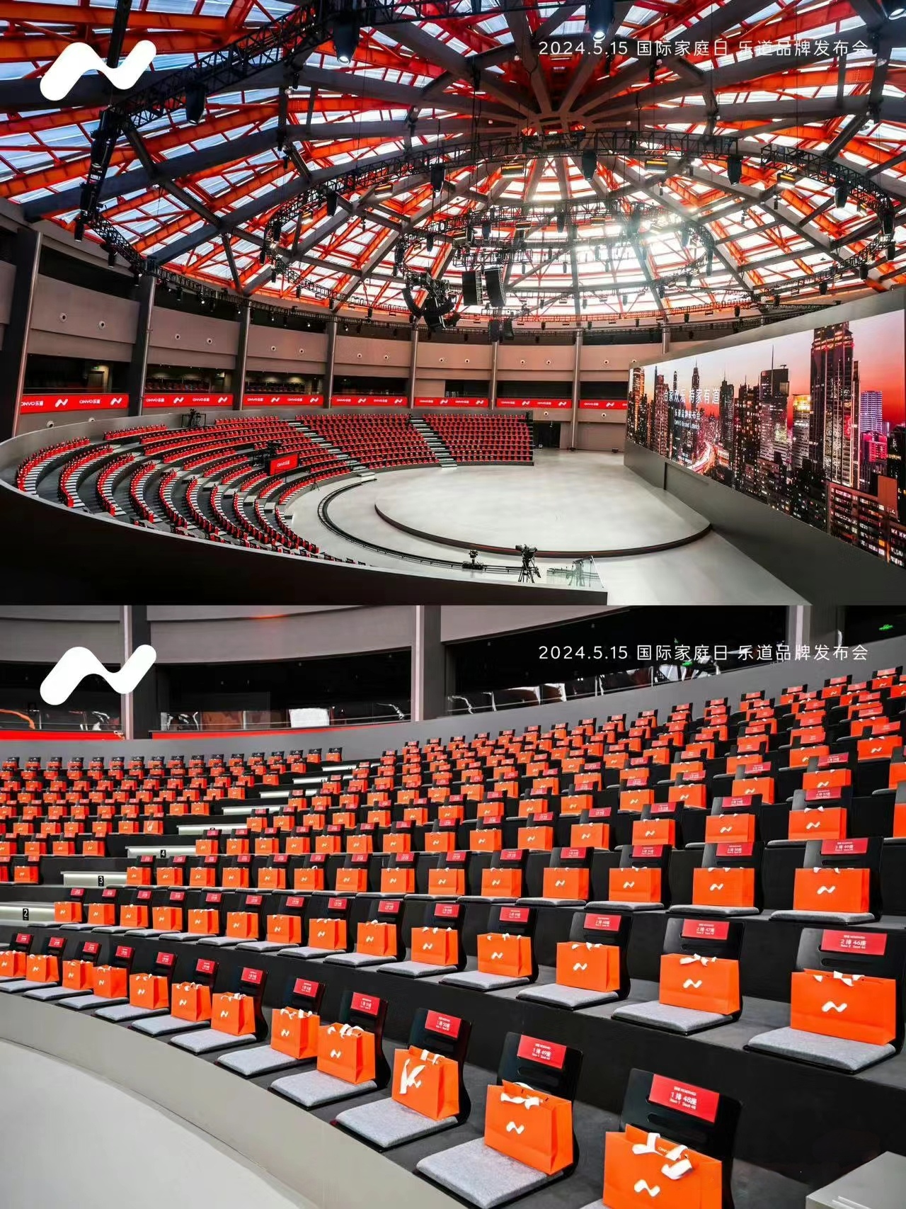 場(chǎng)地選擇:活動(dòng)選在上海西岸穹頂藝術(shù)中心,該場(chǎng)地建筑面積近9000m²,外觀獨(dú)特,中心區(qū)為無柱圓形空間,挑高約27m,二層設(shè)有環(huán)形看臺(tái),可容納大量觀眾,為發(fā)布會(huì)提供了寬廣而獨(dú)特的展示空間。