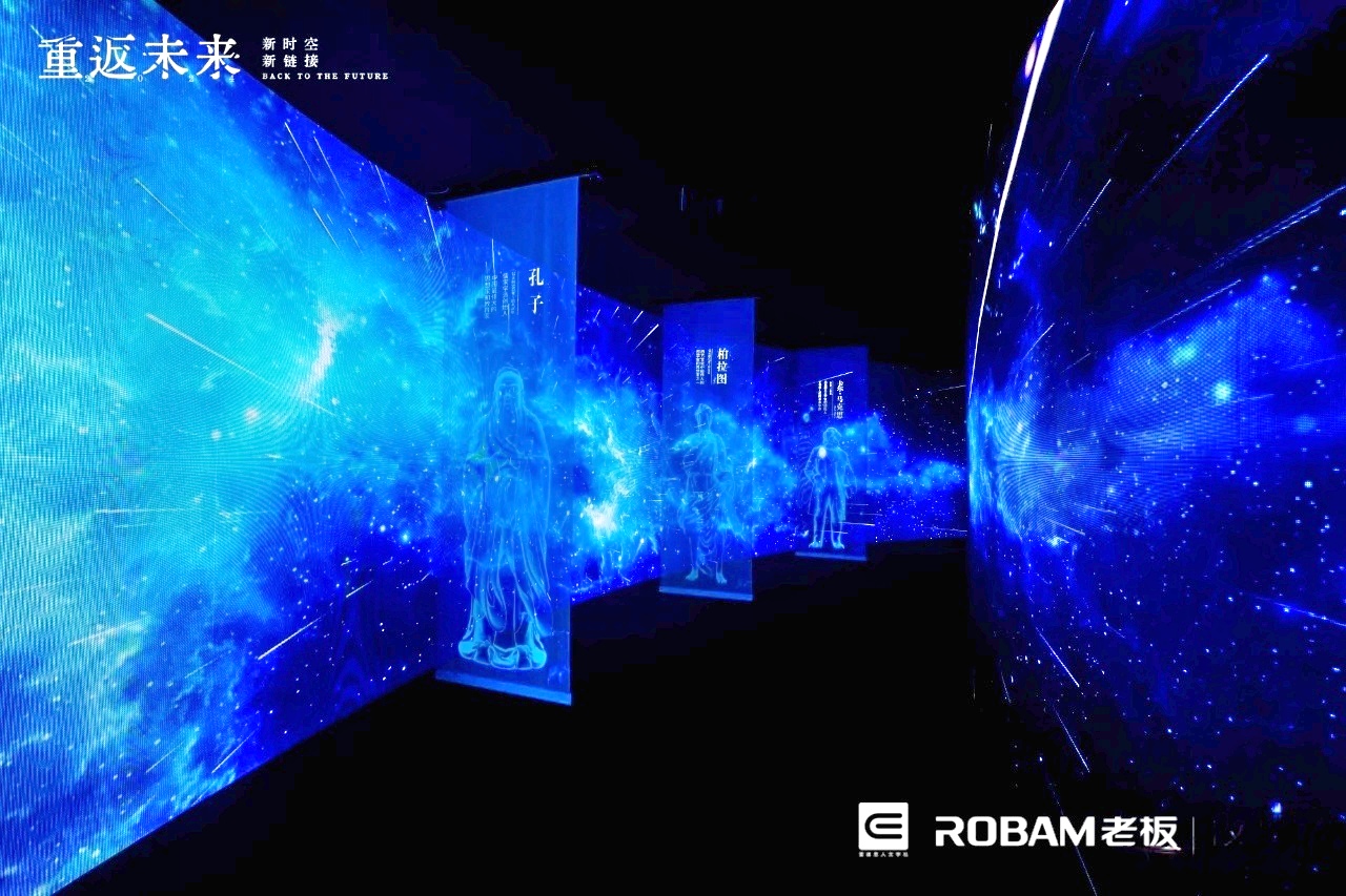 發(fā)布會(huì)場地布置充滿了時(shí)空穿越的沉浸式體驗(yàn)。入口處,巨大的LED屏幕播放著老板電器的發(fā)展歷程視頻,引導(dǎo)觀眾進(jìn)入這場穿越時(shí)空的旅程。場館內(nèi)部,通過巧妙的燈光設(shè)計(jì)和空間布局,營造出一種既復(fù)古又未來的氛圍。觀眾仿佛置身于一個(gè)充滿科技與人文氣息的時(shí)空隧道中,感受著老板電器從過去到未來的每一步跨越。