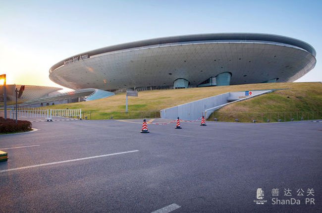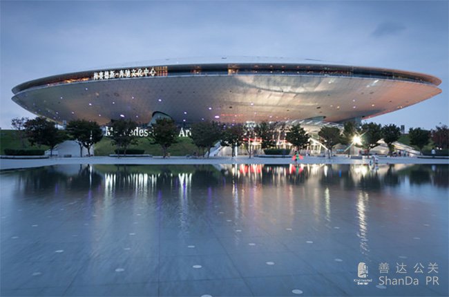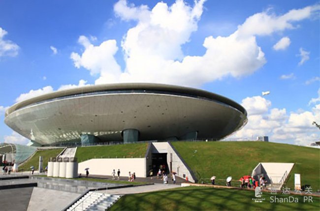 梅賽德斯-奔馳文化中心造型呈飛碟狀,寓意著面向未來,昂揚向上的豪邁氣概,標志著偉大的時代以及對未來的美好憧憬,不同角度和不同空間會呈現出不同形態。白天如“時空飛梭”、似“藝海貝殼”;夜晚則夢幻迷離,恍如“浮游都市”。建筑以西北側盧浦大橋作為底景集中式布局,柔和的建筑形體融于濱江公園綠地之中;與世博慶典廣場有機結合、形態交融;與萬人慶典廣場室內外互動、轉換與銜接;與西側的世博軸、世博中心和南側的中國館相呼應、相協調。擁有一個18,000座的主場館,以及音樂俱樂部、電影院、溜冰場、餐廳、零售區域。梅賽德斯-奔馳文化中心作為2010年上海世博會最重要的永久性場館之一,在世博會期間將承擔各類大型演出和活動,滿足世博會大型文藝演出需求。
