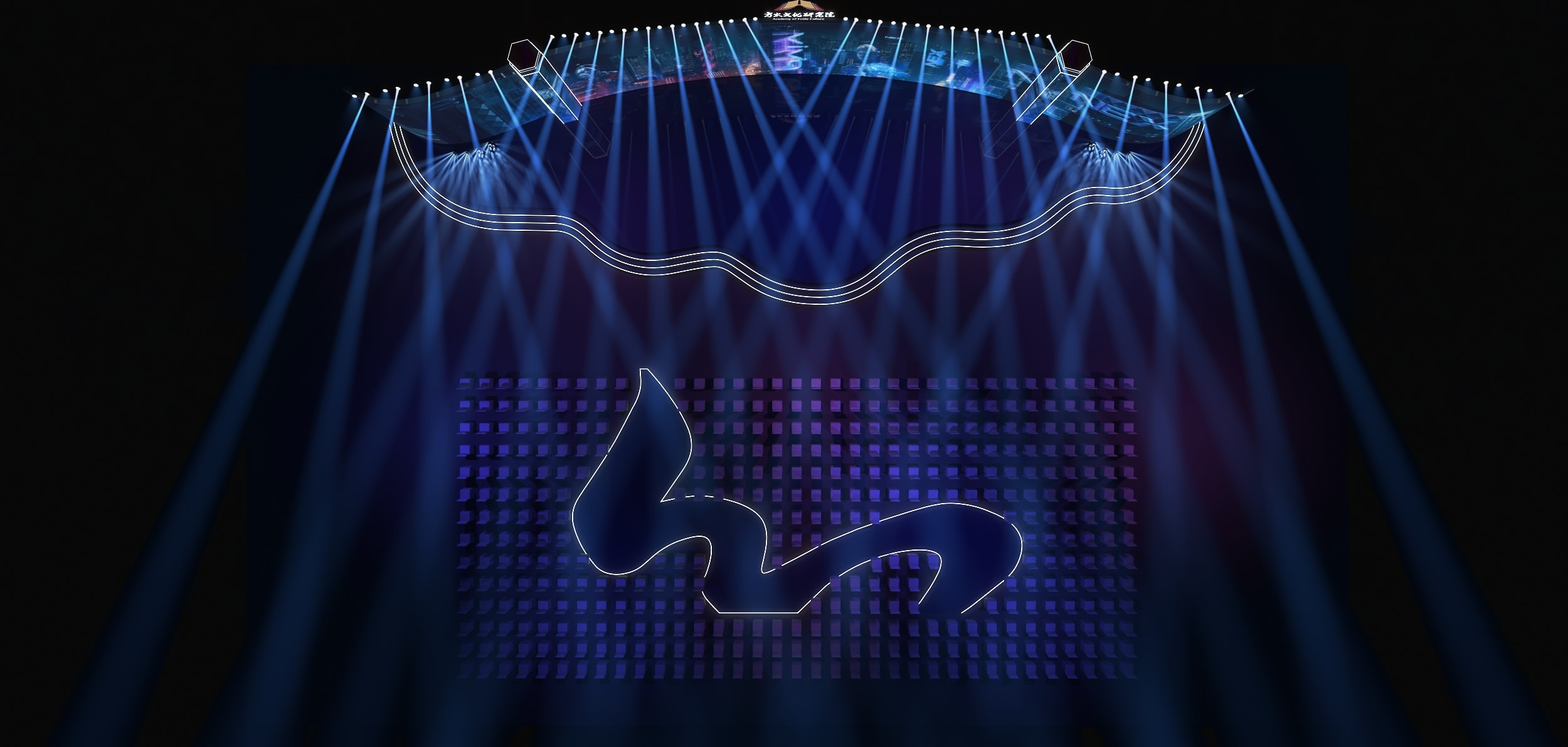 舞臺屏幕采用卷軸樣式,中西合璧,LED屏幕配合視頻制造裸眼3D效果,兩邊舞美設計可延伸為機械臂和航空航天,使古代與現代相融合,文化與科技相碰撞,打造出沉浸式場景互動,整個設計可以與視頻相配合,宣傳方太航天廚房與硬核科技。