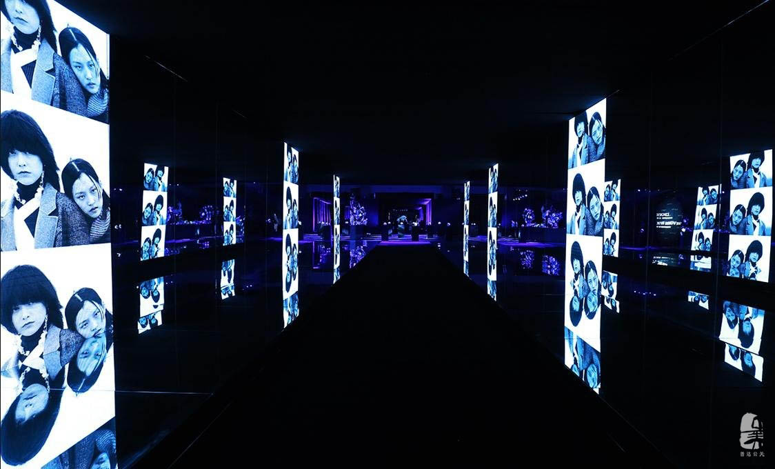 通往秀場的通道處布滿了萬象迭生的鏡面,給人一種行走在另一個時尚空間的感覺。秀場內(nèi),超長單邊T臺與錯落有序的LED屏幕,各種新媒體藝術(shù)裝置,無處不在的驚喜在無聲歡迎著到場的十多家知名時尚媒體、多位人氣KOL、各界時尚大咖的到來。