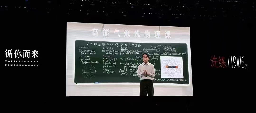 科技的一面我們邀請了“b站科技圈的故事大王”何同學來發布會現場,進行了一場“何同學的物理實驗課”。當復雜的公式變成藝術創作,當方太洗碗機噴淋臂工整地完成了一幅畫,觀眾無一不驚嘆于那些看不懂的公式背后的精密。