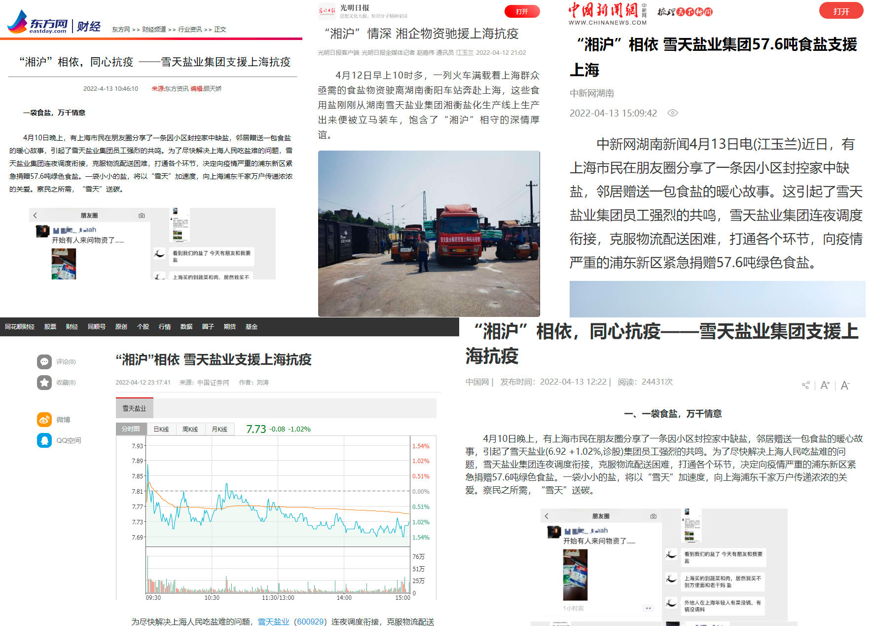 看到小小的一袋鹽能夠在疫情下帶給人的幫助,雪天主動承擔起作為上市國企的責任,隔天便從內部著手展開捐贈60噸鹽的公益行動,支援上海抗疫