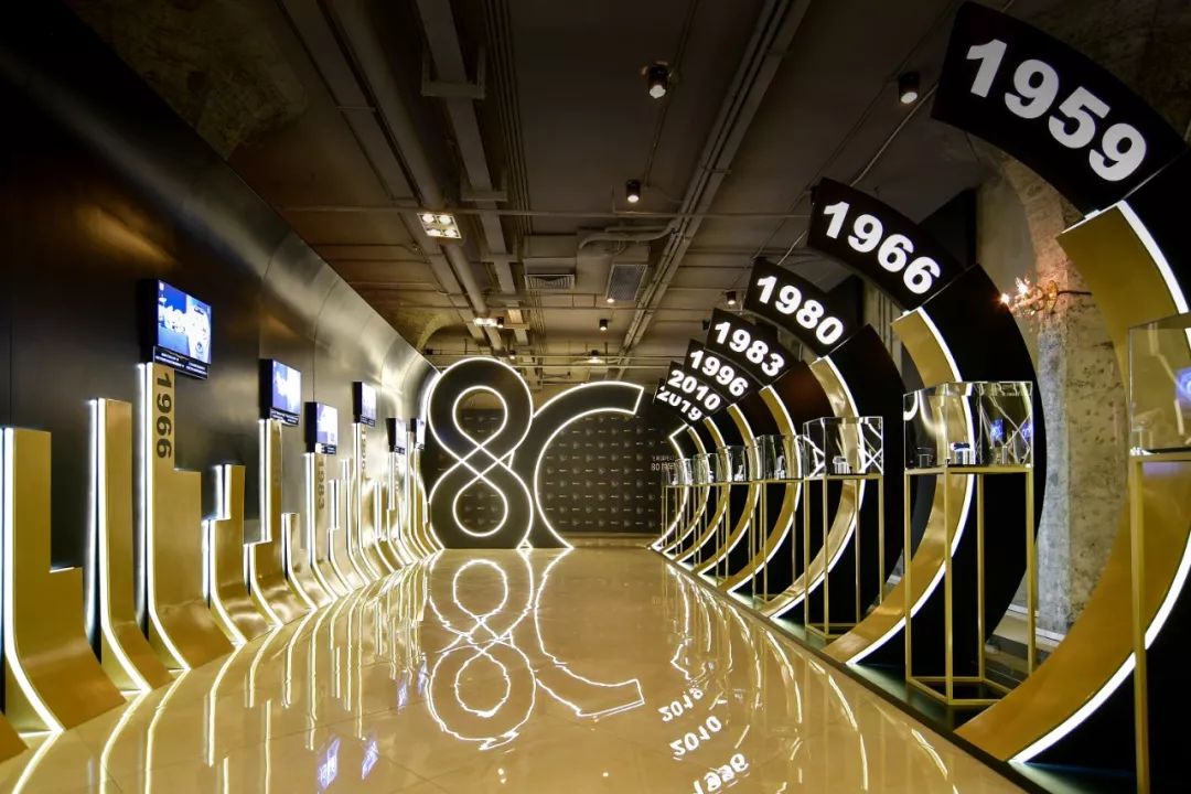 從1939年的第一款到如今的80周年典藏版,每一個都如藝術品般耀眼。通道的另一側是放著飛利浦歷史的大屏幕。