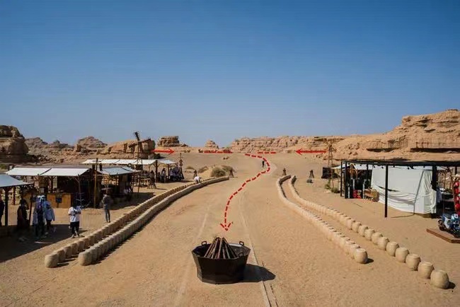 主辦方以“集市”為主線,在沙漠之上為到訪者搭建活動(dòng)之地,讓到訪的來(lái)客可以盡情在此飲茶。來(lái)到這里,你可以瞬間感覺(jué)自己穿越千年,仿佛來(lái)到“新龍門客棧”,刀光劍影在此上演。