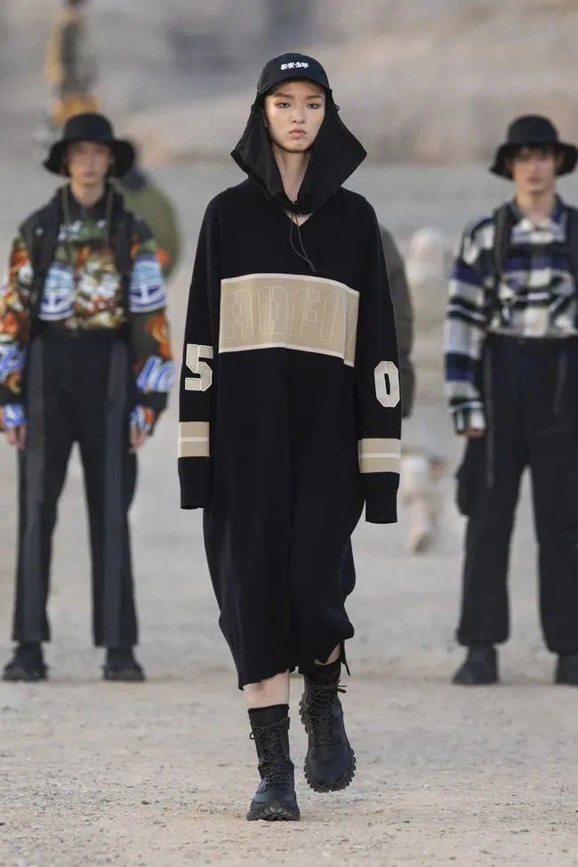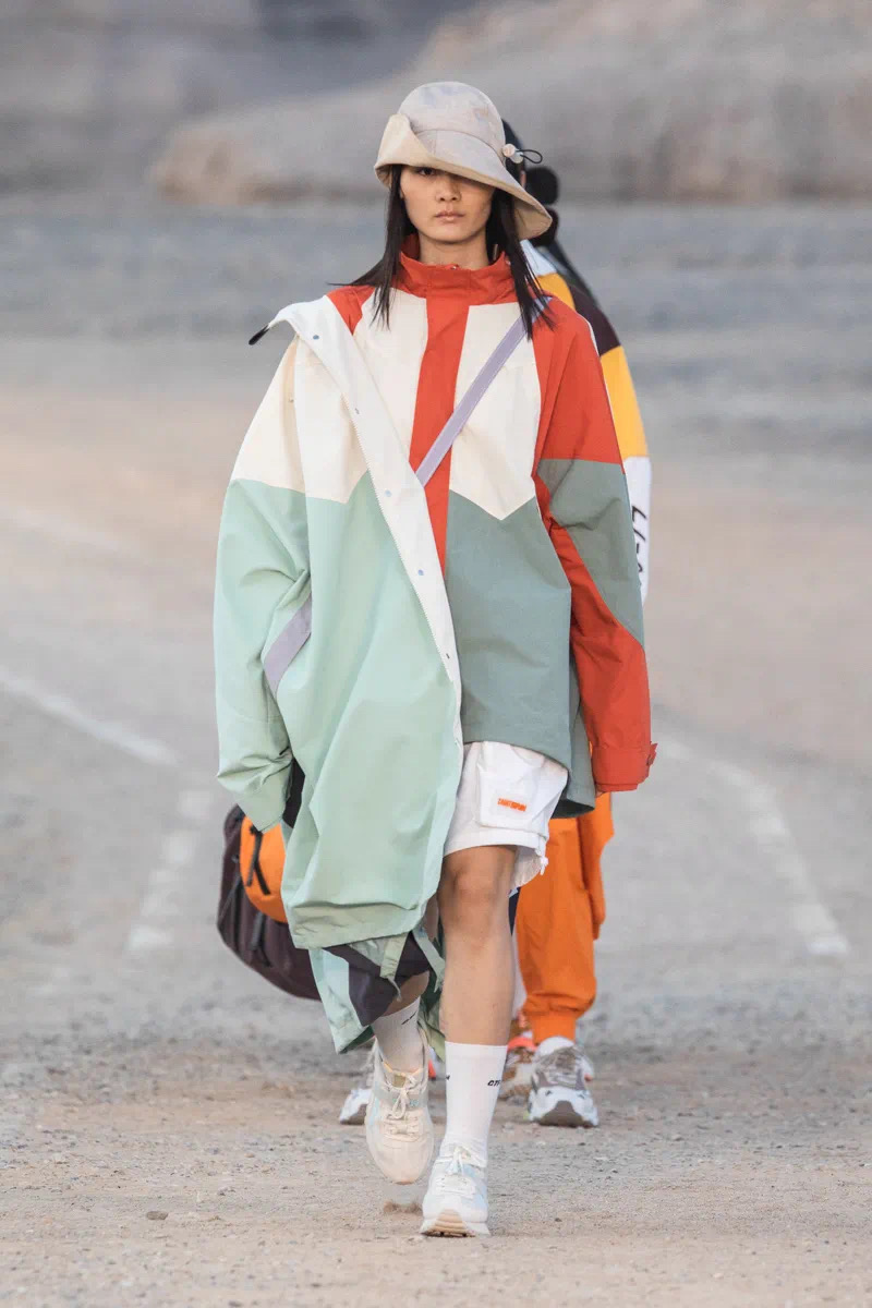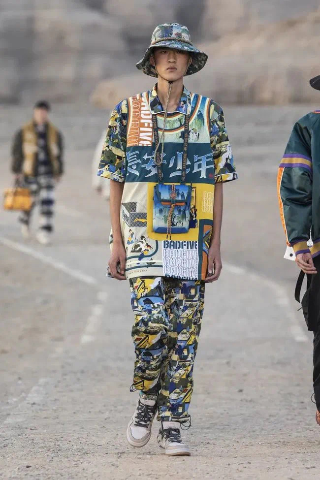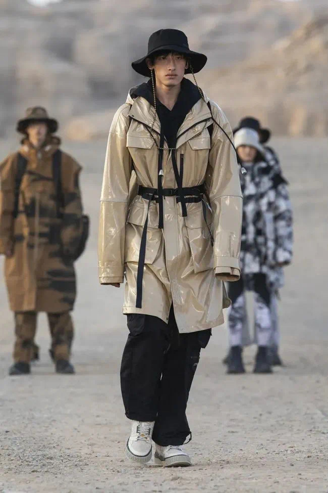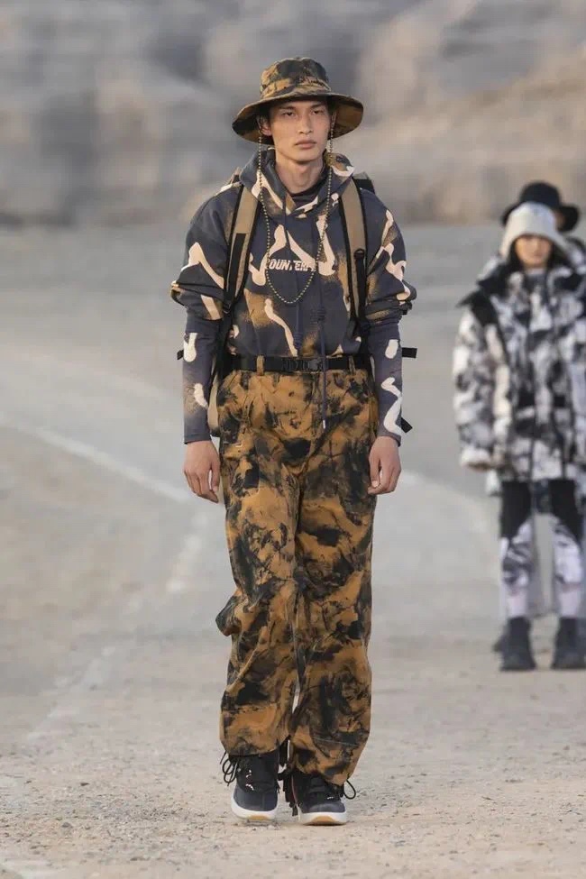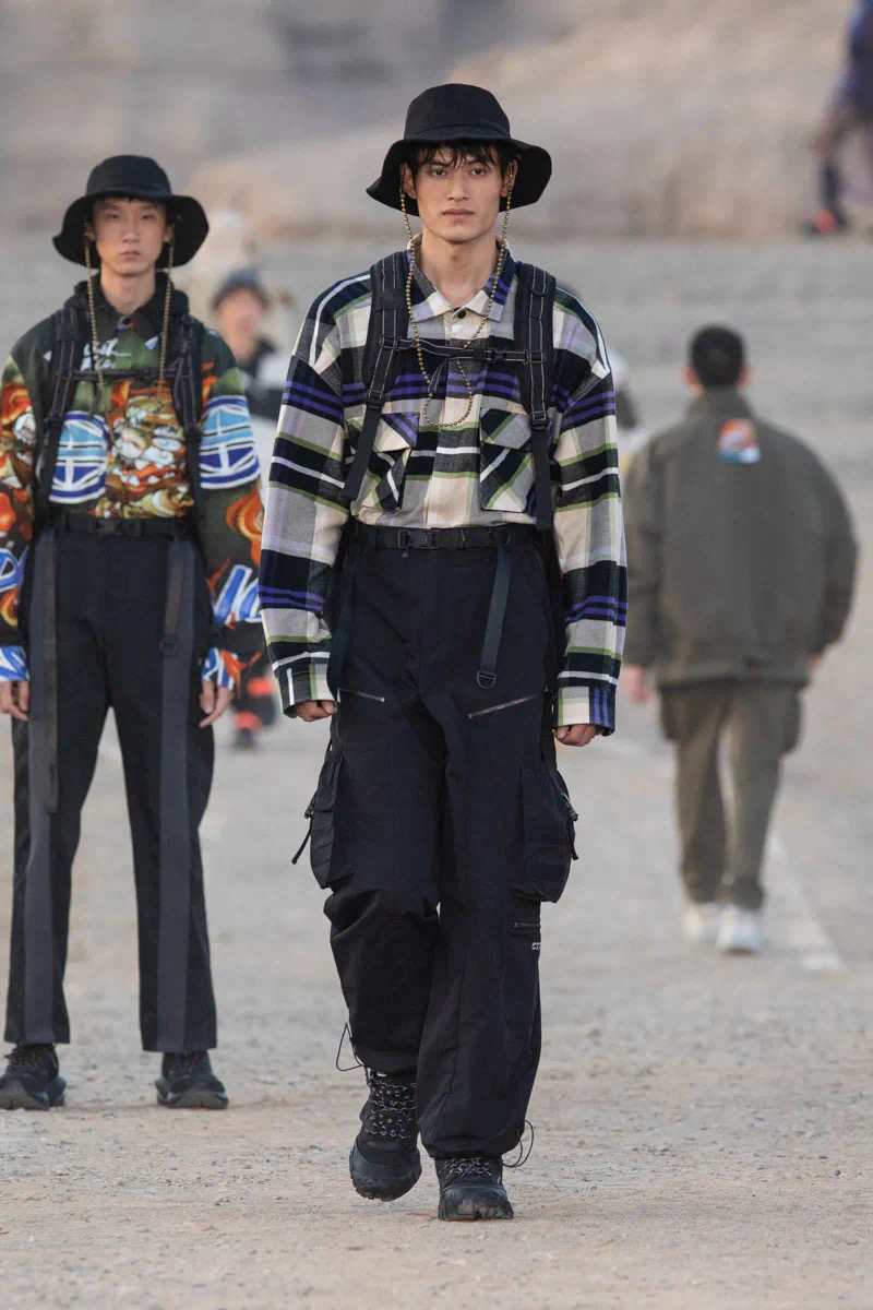 “絲路探行”系列通過(guò)“補(bǔ)丁”等設(shè)計(jì),充分體現(xiàn)了行者的艱苦樸素,堅(jiān)毅勇敢的精神。這個(gè)系列的服飾還通過(guò)各種不規(guī)則感的模塊拼接,彰顯出少年年輕有為、意氣風(fēng)發(fā)的精神面貌。