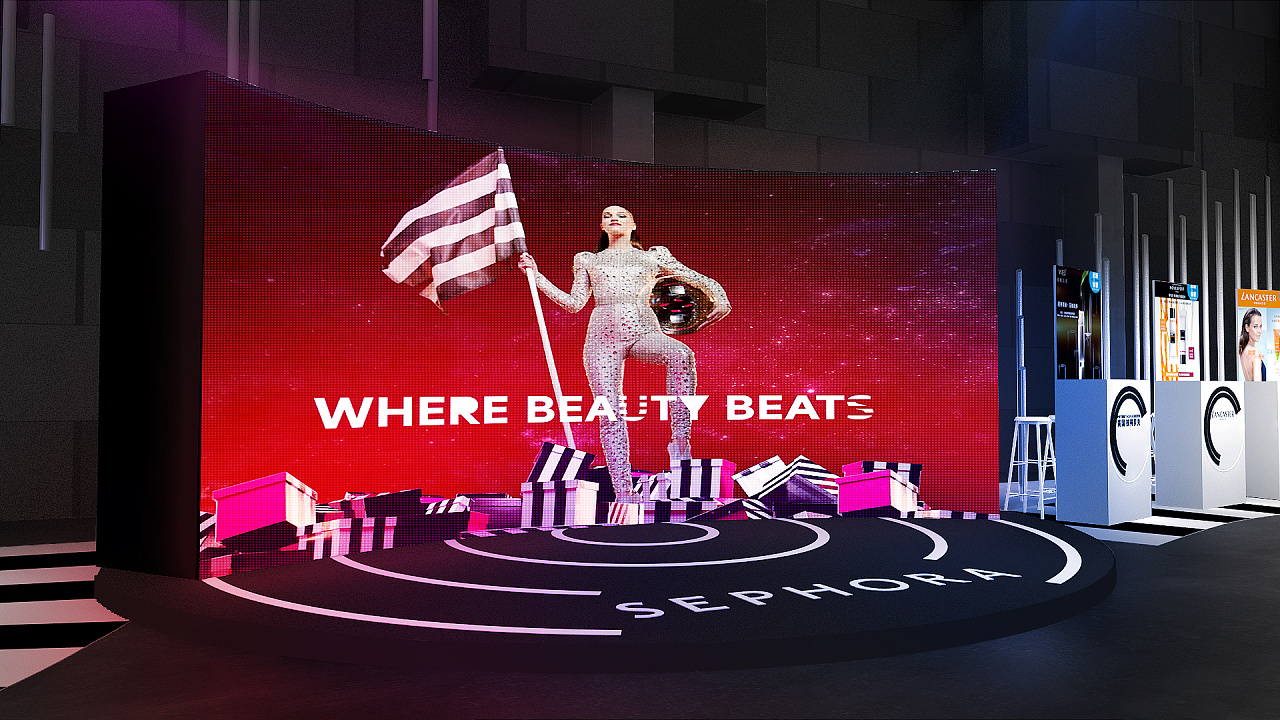 以美妝品輪廓為靈感,融入Wave曲線,寓意SEPHORA美力不斷涌動,美力擴散,美力傳播